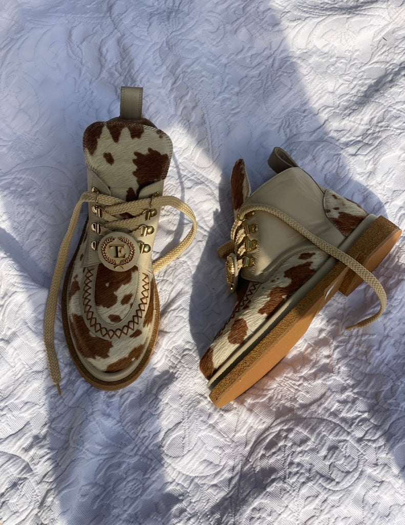 Cow-print fur boots - is backordered and will ship as soon as it is back in stock.
